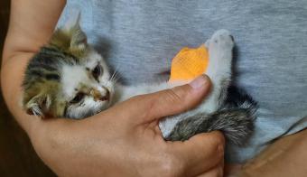 Kochani, tyle jest warte życie małej, zaledwie 500g bezdomnej kotki.