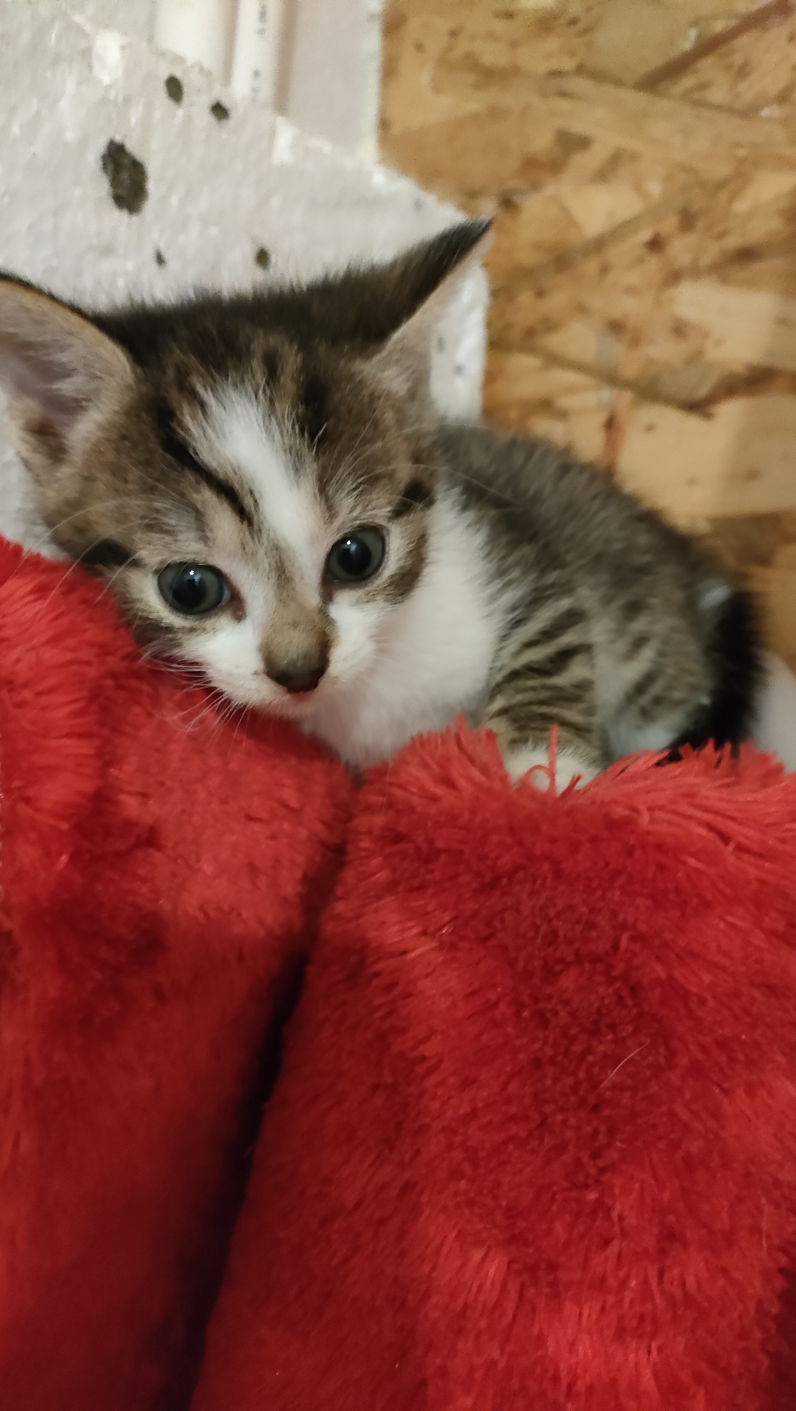 Cześć, jestem Chmurka i przebywam w domku tymczasowym z moją mamą i rodzeństwem.