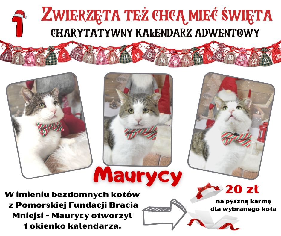 Poznajcie Maurycego, pięknego odważnego i bardzo przyjaznego kota, który bardzo marzy o domowym cieple i Świętach w granie rodzinnym. Mamy nadzieję, że ten słodziak skradnie nie jedno serce.