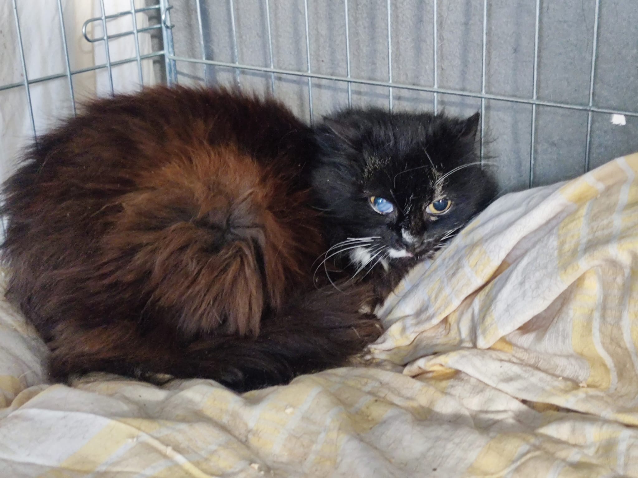 Starsza kotka, z owrzodzeniem na oczku, wykastrowana otoczona opieką weterynaryjną.