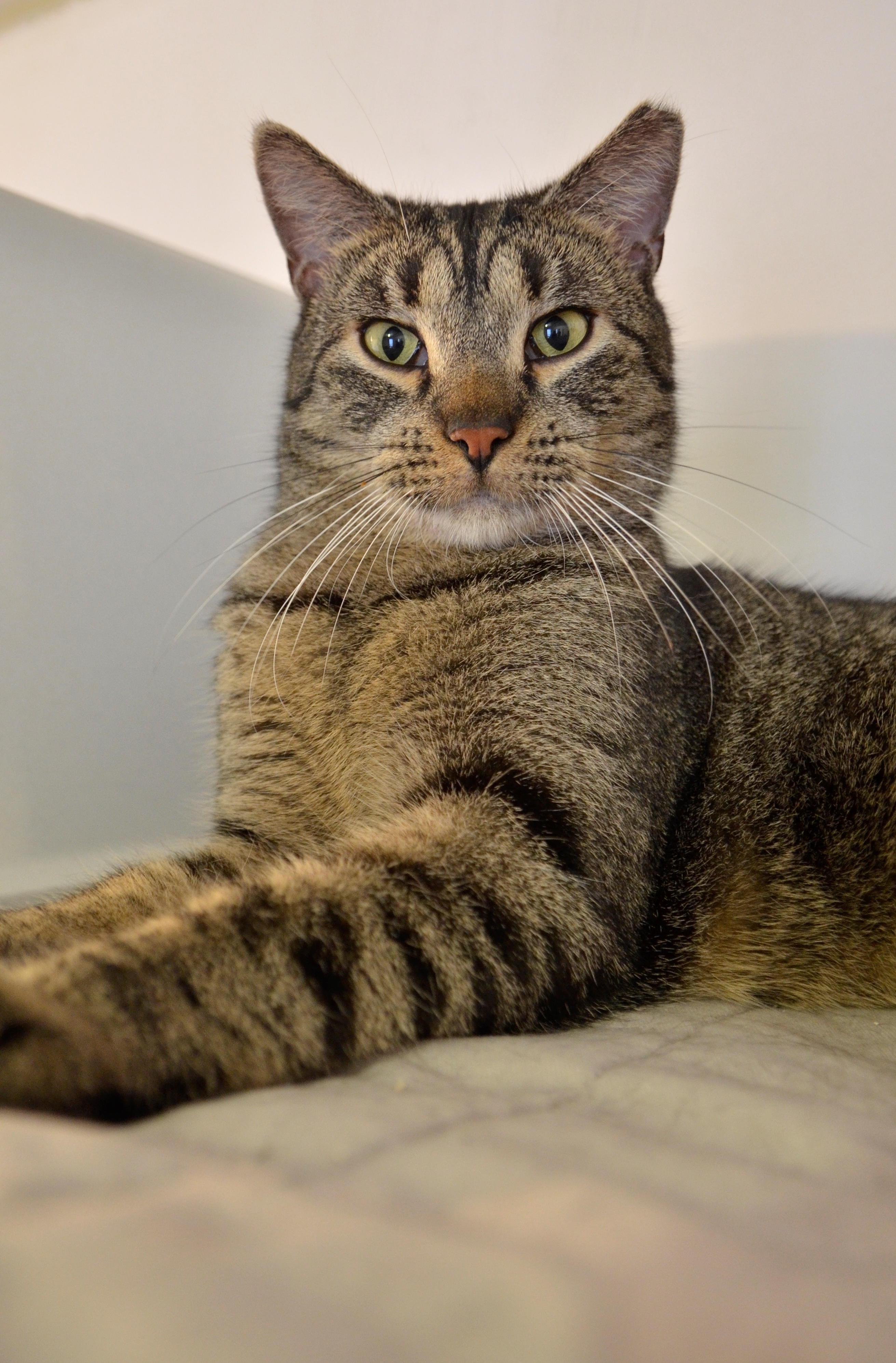Tiger jest już wykastrowany i ma około 2 lat. W pierwszym kontakcie potrzebuje trochę czasu na poznanie nowego opiekuna, ale jak już zaufa to bezgranicznie.