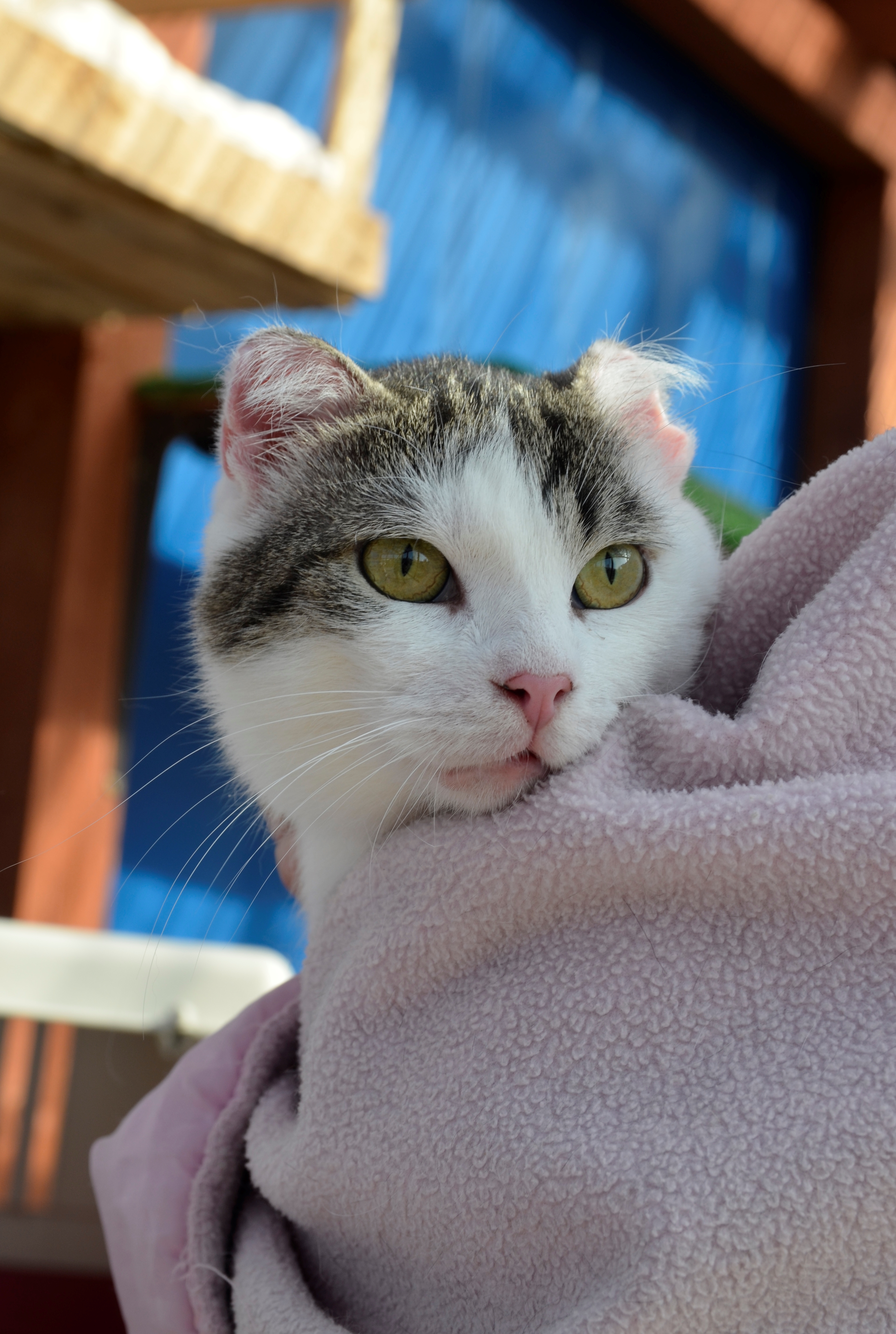 Uszko jest po amputacji uszek. Zmiany okazały niegroźne i wynikały z alergii na słońce. Kot jest już po kastracji.